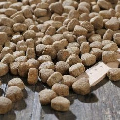 Mais; Maisfuttermehl; Proteine aus der Gelatinegewinnung; Gerste; GeflĂŒgelprotein; Reis (6 %); Grieben, getrocknet; Bierhefe, getrocknet (2,5 %); GeflĂŒgelfett; Pflanzenöl (Palm; Kokos); RĂŒbentrockenschnitzel, entzuckert; GeflĂŒgelleber, hydrolysiert; Natriumchlorid; Kaliumchlorid