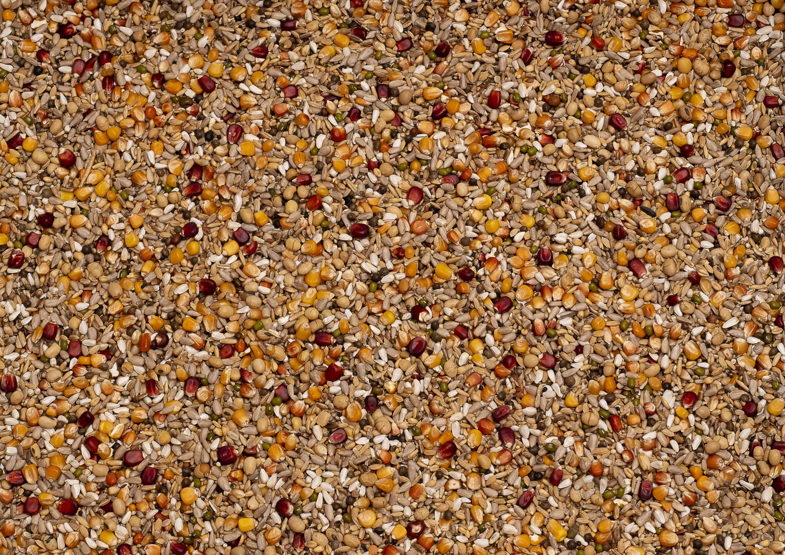 GeschĂ€lter Sonnenblumenkerne 10%, getoastete soja 6%, Bordeaux mais 5%, MaĂŻs merano 5%, Hanf 5%, geschĂ€lter Hafer 5%, weiÎČe Weizen 5%, Mais Cribbs 5%, kleiner Cribbs-mais 5%, Kardi 5%, Paddy-Reis 5%, Mais Popcorn 5%, Wicken 4%, Leinsamen 4%, WeiÎČe samen 4%, Plata Mais 4%, Naturreis 4%, Kadjang Idjoe 3%, Raps 2%, RĂŒbsen 2%, Mariendistel 2%, Millet gelb 2%, Sesam 2%, Millet WeiÎČ 1%