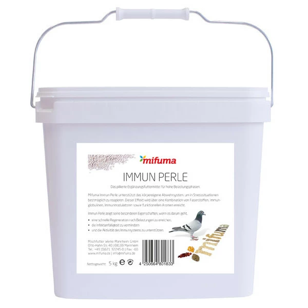 Tauben gesund fĂŒttern und vor Krankheit zu schĂŒtzen, steht fĂŒr viele ZĂŒchter an erster Stelle ihrer PrioritĂ€tenliste. WĂ€hrend hoher Belastungsphasen und insbesondere in der Reisezeit vertrauen viele erfolgreiche Sportfreunde auf unsere Mifuma Immun Perle.