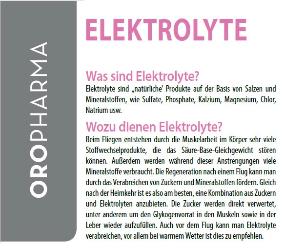 Das ideale Energeticum fĂŒr Brieftauben: wasserlösliche Elektrolyten, Spurenelemente, Dextrose, Fruktose, L-Arginin und L-Aspartat
